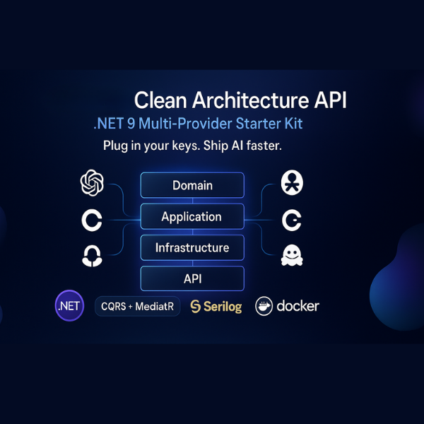 This production-ready .NET 9 Web API starter kit gives you a clean, scalable foundation and a unified AI integration layer across multiple providers—so you can move from idea to shipped feature in days, not months.